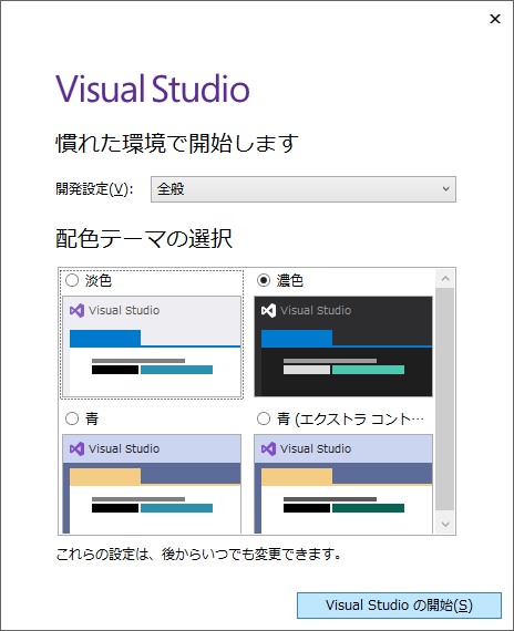 無事にVisual Studio2017の設定を読み込んだVisual Studio 2019