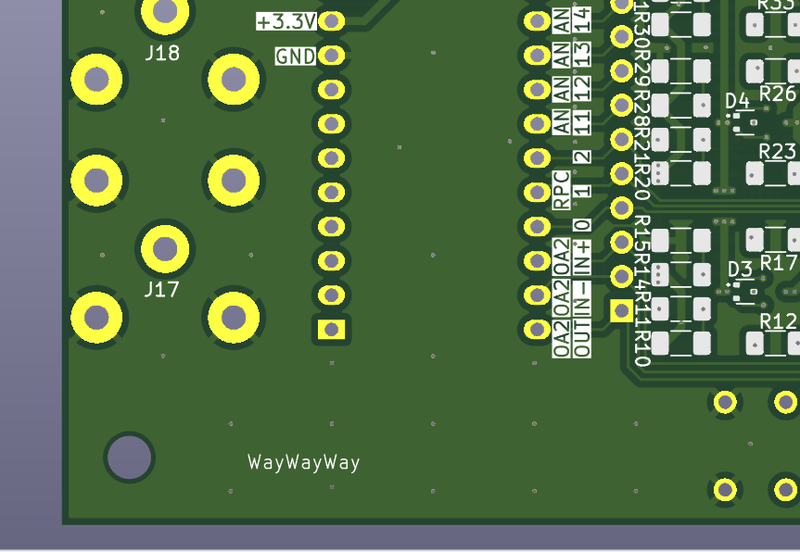 場所指定方法はシルク文字で「WayWayWay」を自分で好きな場所に描いておけば良い。今回は基板裏面(B.Silkレイヤー)に下図のように「WayWayWay」を描いておいた。