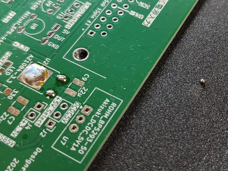 下写真のようにその5mmの糸ハンダが溶けて丸まった。