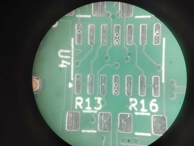 上写真でも幾つかの半田パッドにプローブ電極ピンの接触痕らしきものが確認出来る。
