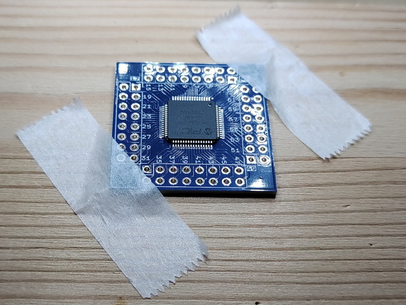 写真 PIC32MK1024GPK064(TQFP64パッケージ)を半田付けする