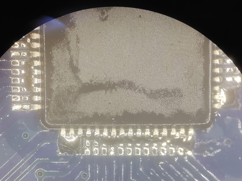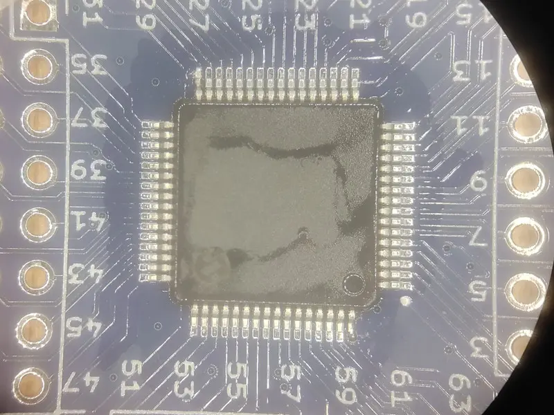 写真 フラックスを塗ったPIC32MKのTQFP64パッケージ
