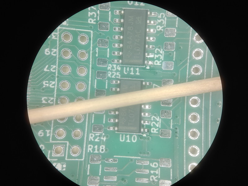 今までは左手で爪楊枝を持ってチップ部品を押さえながら、右手で半田付け。それも実体顕微鏡を覗きながらの作業なので、非常にやりづらかった。