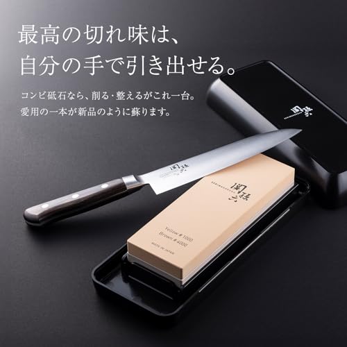 包丁研ぎには1000番手の中砥が有れば足りるが、上写真のやつは片面が1000番で反対側が4000番の仕上砥石になっている。1000番だけでも十分に研げるが4000番で研ぐ事でより光沢を出す事が出来るので見た目が良くなる。