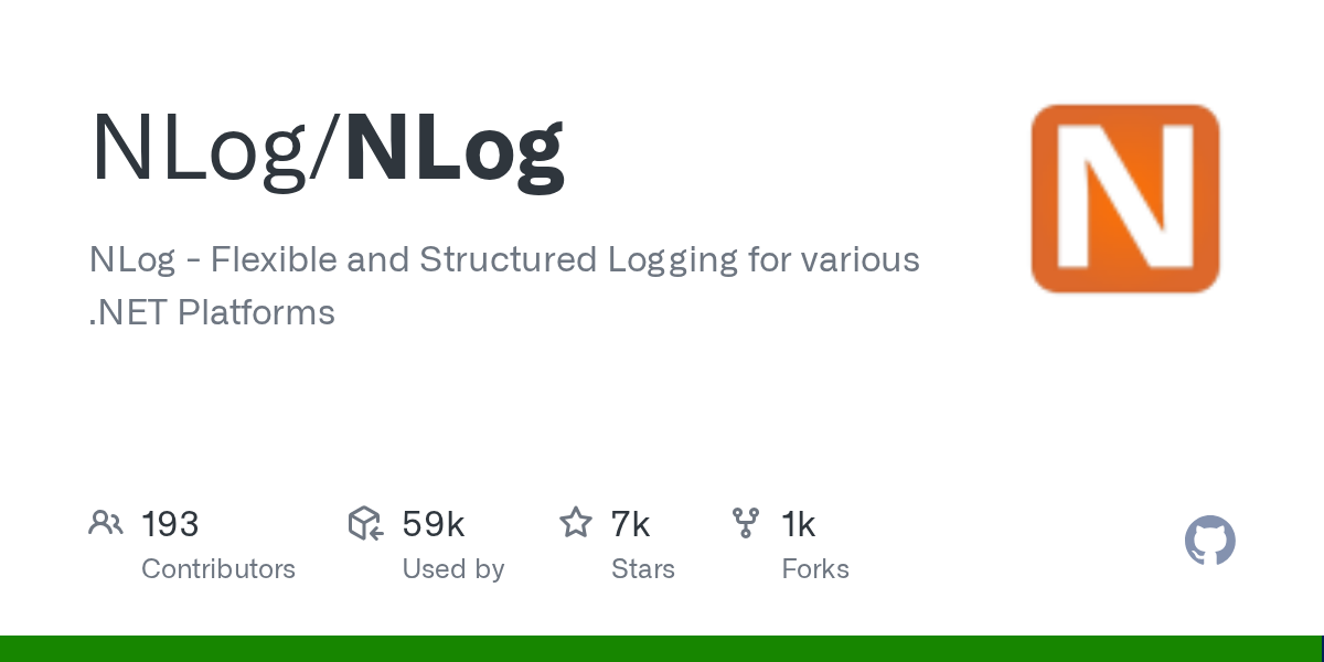 NLog GitHub - NLog/NLog: NLog - Flexible and Structured Logging for various .NET PlatformsNLog - Flexible and Structured Logging for various .NET Platforms - NLog/NLog