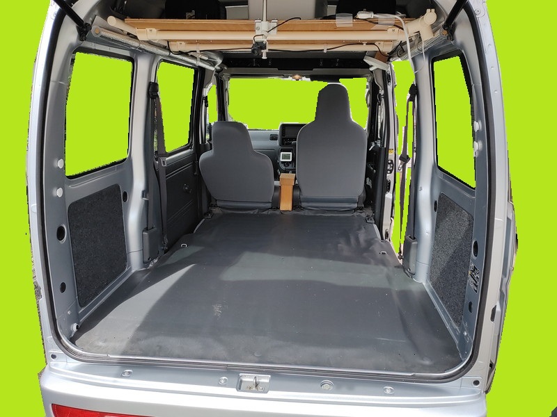 ワテの軽バン(ハイゼットカーゴ)は、ベンチシート型の後部座席を倒せば完全にフラットに収納出来る。