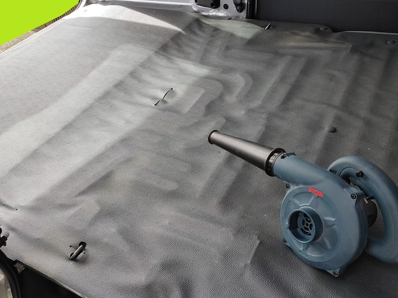 下写真のようにブロアーで荷室のゴミを吹き飛ばした。