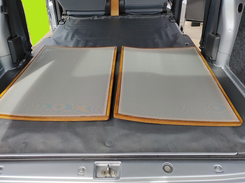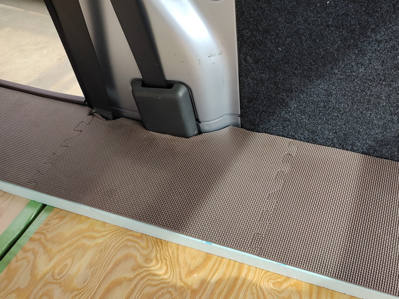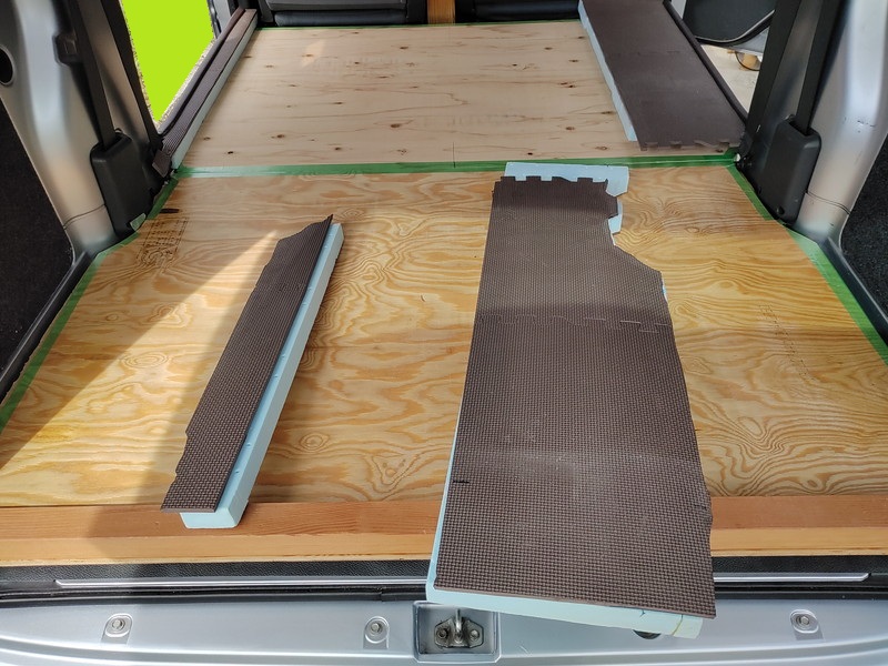 下写真のように、合板を敷いて左右の隙間はスタイロフォームやクッションフロアで埋める事が出来た。