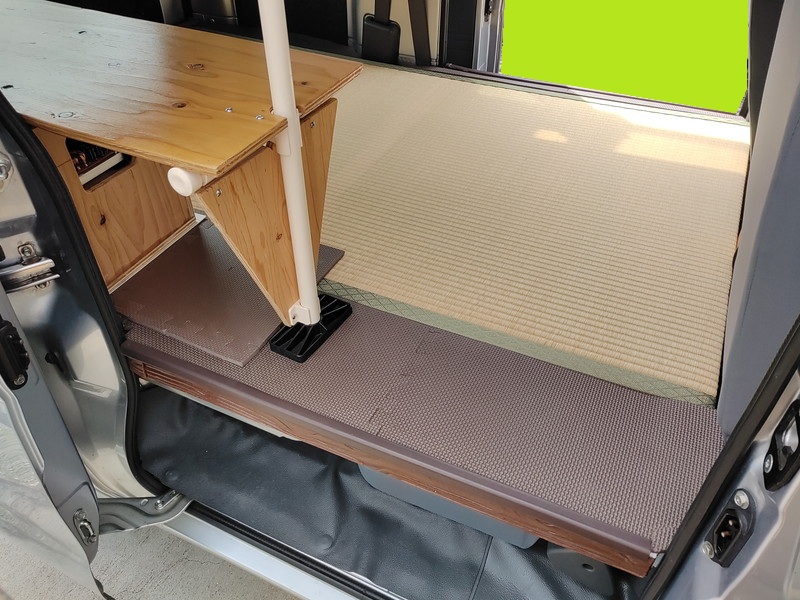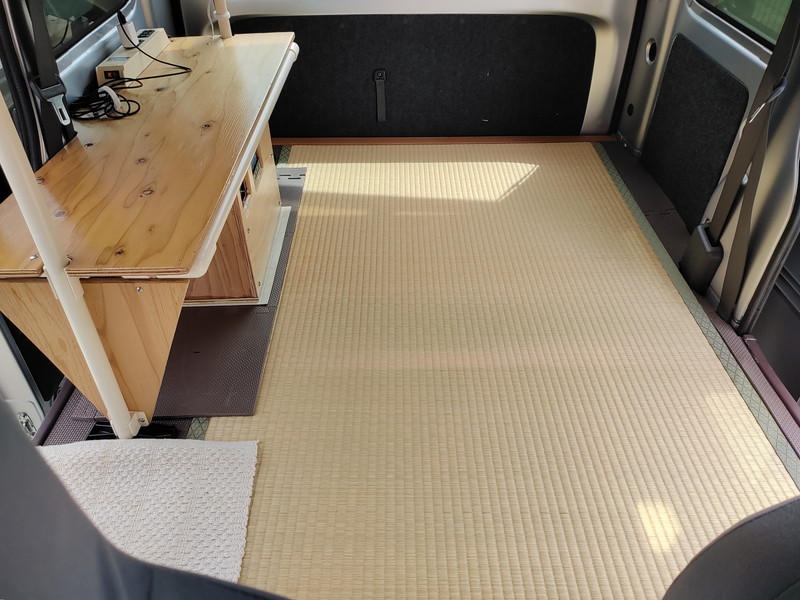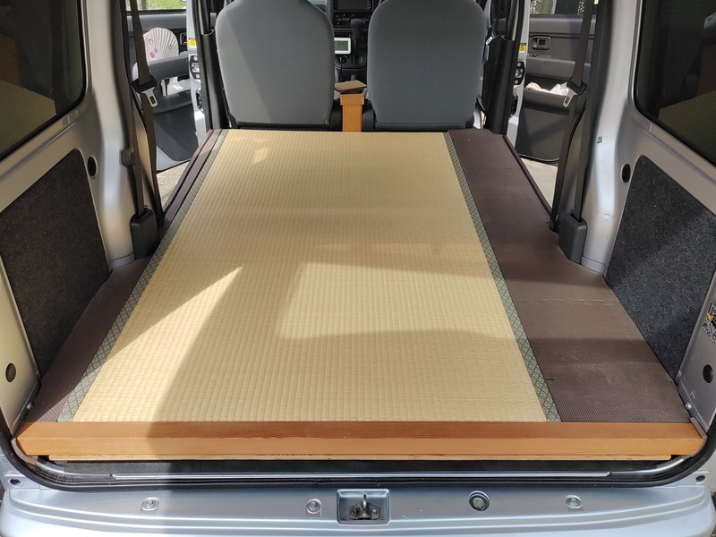 写真 畳敷き軽バン車中泊仕様が完成(運転席側から撮影)