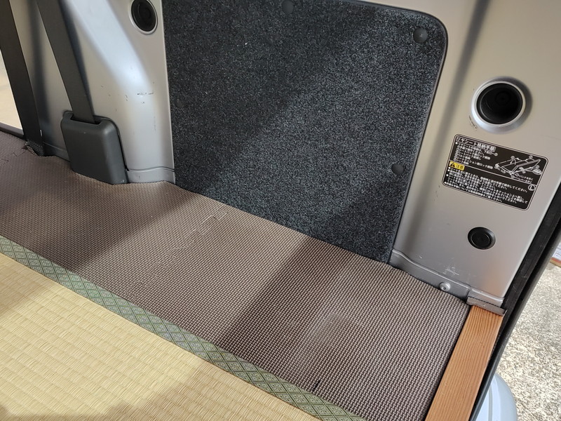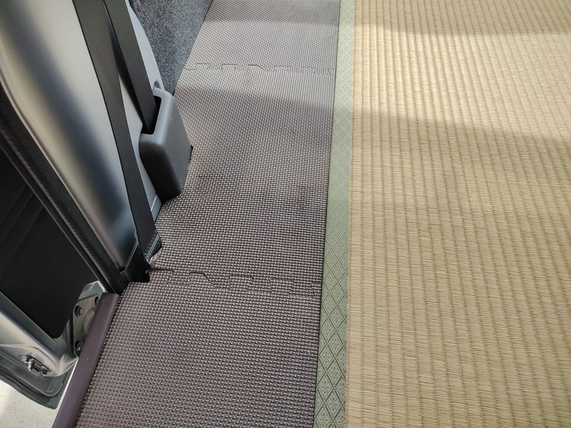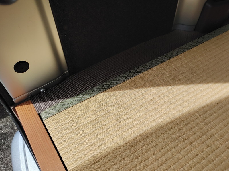 写真 畳敷き軽バン車中泊仕様が完成(スライドドア側から撮影)