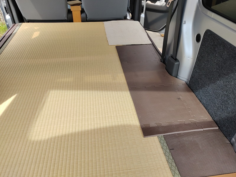 と言う事で下写真のように畳敷き軽バン車中泊仕様が完成したのだ。