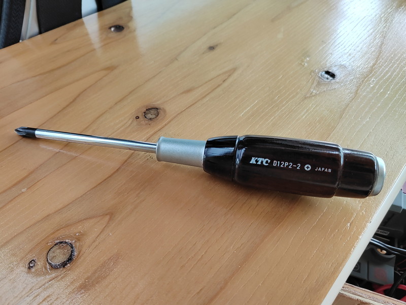このKTC木柄貫通ドライバーは値段はそんなに高くないけど、ワテ好みのデザインなので気に入っている。
