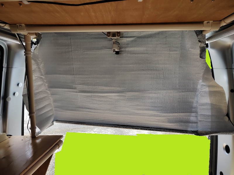 そのマジックテープの反対側は下写真のようにボディ天井に貼り付けているので、固定帯を張り合わせればアルミシートが固定出来る。