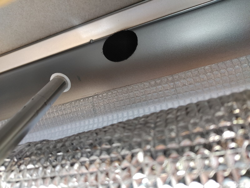 アルミシート上部にはマグネットテープを貼り付けているので、車体天井付近の鉄板に貼り付けられる(下写真)。