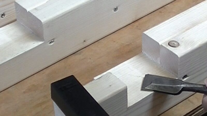 写真 脚の一部を鑿で切り取って凹形状に加工