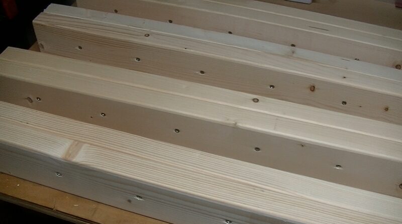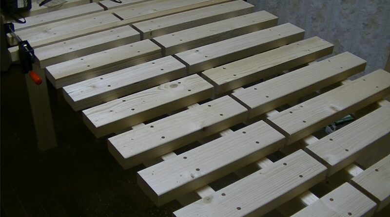 スノコ間隔は56.083 mmと言う半端な数字になった。その理由は1830mmの長さに13本のスノコ棒を配置したので。
