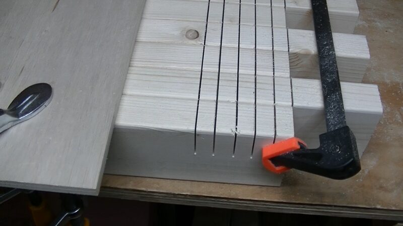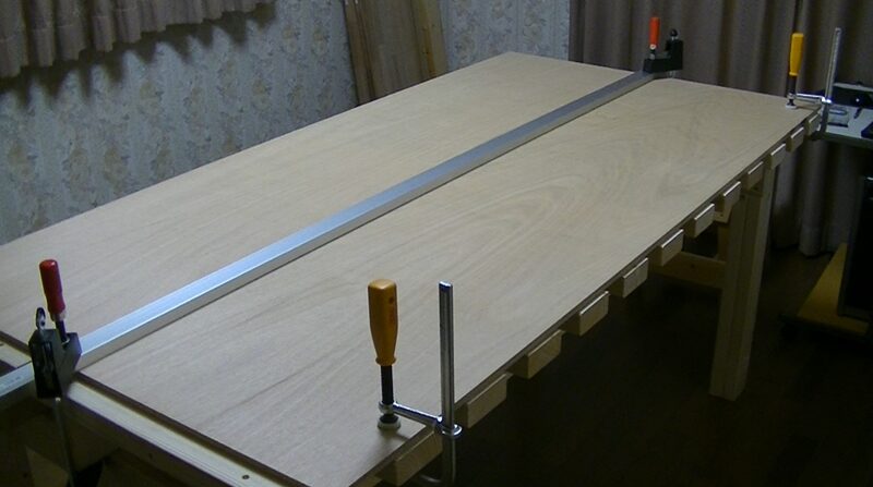 つまりスノコ板同士の隙間が沢山あるので、F型やL型のクランプを使えばどんな寸法の部材でもクランプしやすいのだ。