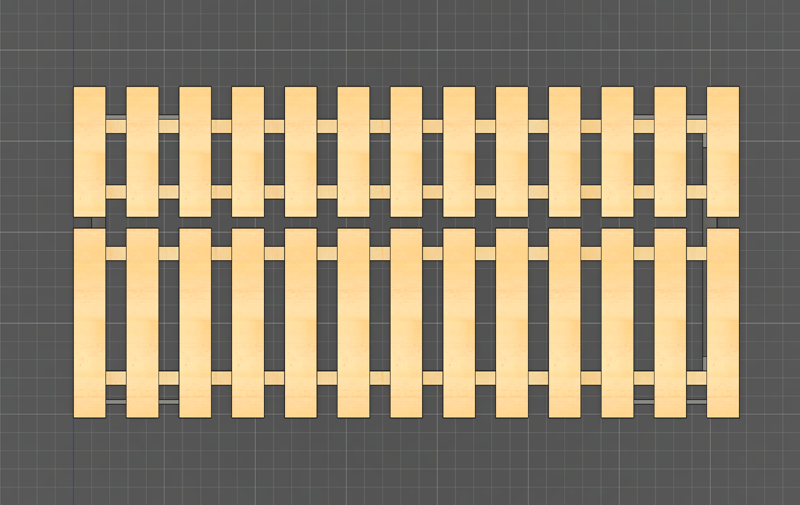 上で示したFusion360の設計図のように、作業台のスノコ部は縦溝も一つ追加するので、下写真のように長手方向の支え棒は四本取り付ける。